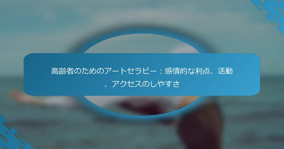 アートセラピーは、高齢者の感情的な幸福感を創造的な表現を通じて大幅に向上させます。これは社会的なつながりを促進し、孤立感を軽減し、絵画やドローイングなどの活動を含みます。アクセシビリティは重要であり、プログラムはさまざまな身体的および認知的能力に対応するように調整され、すべての参加者に対する包括性を確保します。 高齢者のためのアートセラピーとは何ですか? 高齢者のためのアートセラピーは、創造的な表現を通じて感情的な幸福感を高めます。これは社会的なつながりを育み、孤立感を減少させます。活動には絵画、ドローイング、彫刻が含まれ、これらは認知機能を刺激し、リラクゼーションを促進します。アクセシビリティは非常に重要であり、プログラムはしばしば異なる身体的および認知的能力に適応し、すべての参加者に対する包括性を確保します。 アートセラピーは従来のセラピーとどのように異なりますか? アートセラピーは感情表現のために創造性を活用する一方で、従来のセラピーは言語コミュニケーションに依存します。アートセラピーは高齢者が非言語的に感情を表現することを可能にし、感情の解放とつながりを促進します。従来のセラピーは、限られた言語スキルを持つ人々には対応できない場合があり、アートセラピーの方がアクセスしやすいです。さらに、アートセラピーは認知機能を向上させ、従来の環境ではあまり強調されない独自の社会的相互作用の形を提供します。 高齢者に対するアートセラピーの感情的な利点は何ですか? アートセラピーは高齢者に対して重要な感情的な利点を提供し、メンタルウェルビーイングを向上させます。自己表現を促進し、孤立感を減少させ、感情的なレジリエンスを高めます。創造的な活動に参加することで、気分が改善され、不安が軽減され、感情のための治療的な出口を提供します。研究によると、アートセラピーは認知機能と記憶の想起を向上させることができ、これは高齢者のメンタルヘルスを維持するために重要です。 アートセラピーは高齢者のうつ病にどのように役立ちますか? アートセラピーは、高齢者のうつ病を感情表現とつながりを提供することで大幅に軽減できます。創造的な活動に参加することで自己肯定感が高まり、孤立感が減少します。研究によると、アートセラピーはうつ病の症状を軽減し、全体的な幸福感を高めることができます。アートセラピーの独自の特性は、言葉で表現するのが難しい感情を伝える能力にあり、この人口層に特に効果的です。 創造性は感情的な幸福感にどのような役割を果たしますか? 創造性は自己表現とストレス解消の手段を提供することで、感情的な幸福感を大幅に向上させます。アートセラピーに参加することで、高齢者は自分の感情を探求し、気分を改善し、社会的なつながりを育むことができます。この治療的アプローチは、不安やうつ病の症状を軽減し、目的意識と充実感を促進します。研究によると、創造的な活動は快楽に関連する脳の領域を活性化し、メンタルヘルスの結果を改善することが示されています。 高齢者のためのアートセラピーで一般的に使用される活動は何ですか? 高齢者のためのアートセラピーには、絵画、ドローイング、コラージュ作成、彫刻などの活動が含まれます。これらの創造的な表現は感情的な幸福感と認知的な関与を促進します。アートセラピーに参加することで孤立感が減少し、自己肯定感が高まります。さらに、活動は身体的な制限に対応するように調整され、すべての参加者に対するアクセシビリティを確保します。 どのアート形式が最も有益ですか? 絵画、音楽、ダンスなどのアート形式は、高齢者にとって非常に有益です。これらの活動は感情的な幸福感を高め、認知機能を刺激し、社会的相互作用を促進します。芸術的表現に参加することで孤立感やうつ病が軽減され、目的意識が育まれます。さらに、アートセラピーはアクセスしやすく、最小限のリソースで重要な治療的利点を提供します。 グループアートセラピーセッションは社会的相互作用をどのように強化しますか? グループアートセラピーセッションは、高齢者の間での社会的相互作用を大幅に強化し、つながりとコミュニケーションを促進します。参加者は共同の芸術活動に参加し、共有や議論を促します。この共有された創造的プロセスは社会的な障壁を打破し、帰属意識を促進します。研究によると、アートセラピーは孤立感を軽減し、感情的な幸福感を改善することが示されています。その結果、これらのセッションは創造的な表現を提供するだけでなく、参加者間のコミュニティの絆や人間関係を強化します。 共同アートプロジェクトの例は何ですか? 高齢者のための共同アートプロジェクトは、感情的な幸福感を高め、社会的なつながりを育むことができます。例としては、コミュニティの壁画制作、グループ陶芸クラス、共同ストーリ